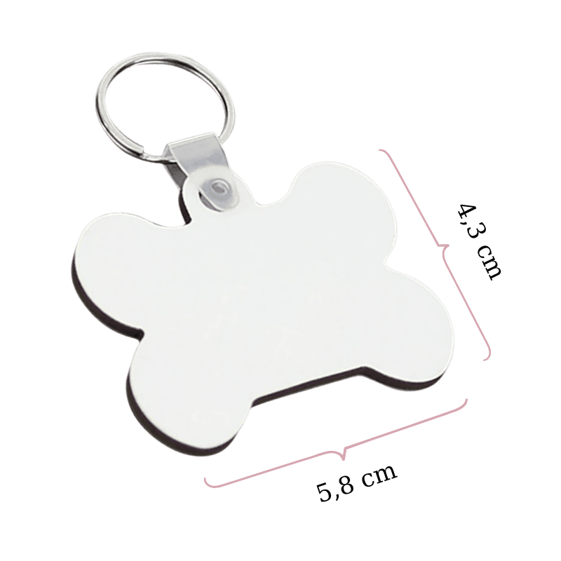 Presentamos el Llavero de MDF con forma de Hueso, el detalle más original y funcional del mercado. Su diseño único no solo sirve como un llavero personalizado para que lleves contigo una foto de tu mascota o un recuerdo especial, sino que también funciona como una adorable y ligera placa de identificación para el collar de tu perro.